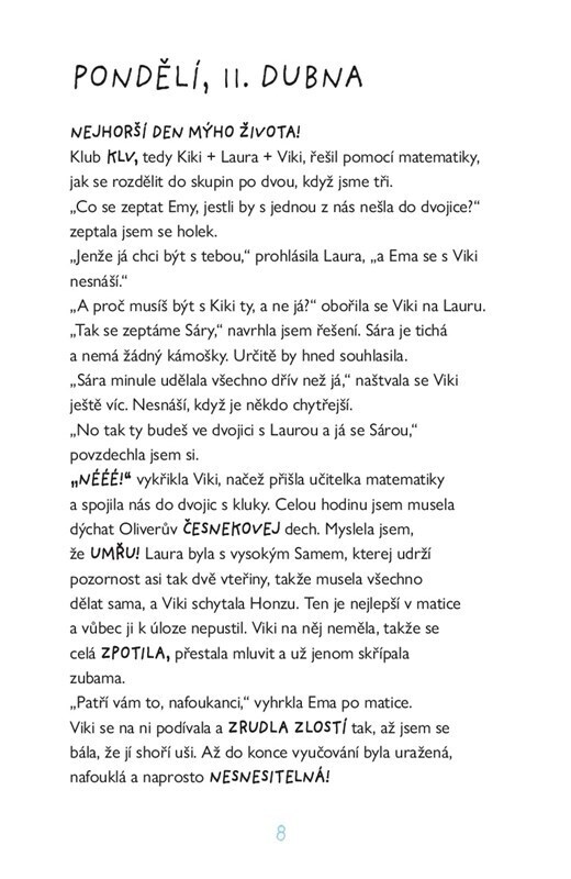 Kiki je jako ty, obyčejná holka, která chodí do obyčejné školy, miluje zvířata, má super staršího a totálně otravného mladšího bráchu a hlavně ty nejskvělejší kámošky. K devátým narozeninám dostane od rodičů DENÍK. To jako VÁŽNĚ?!!! Co si tam má asi tak psát?!!! Všechno se však změní, když do...