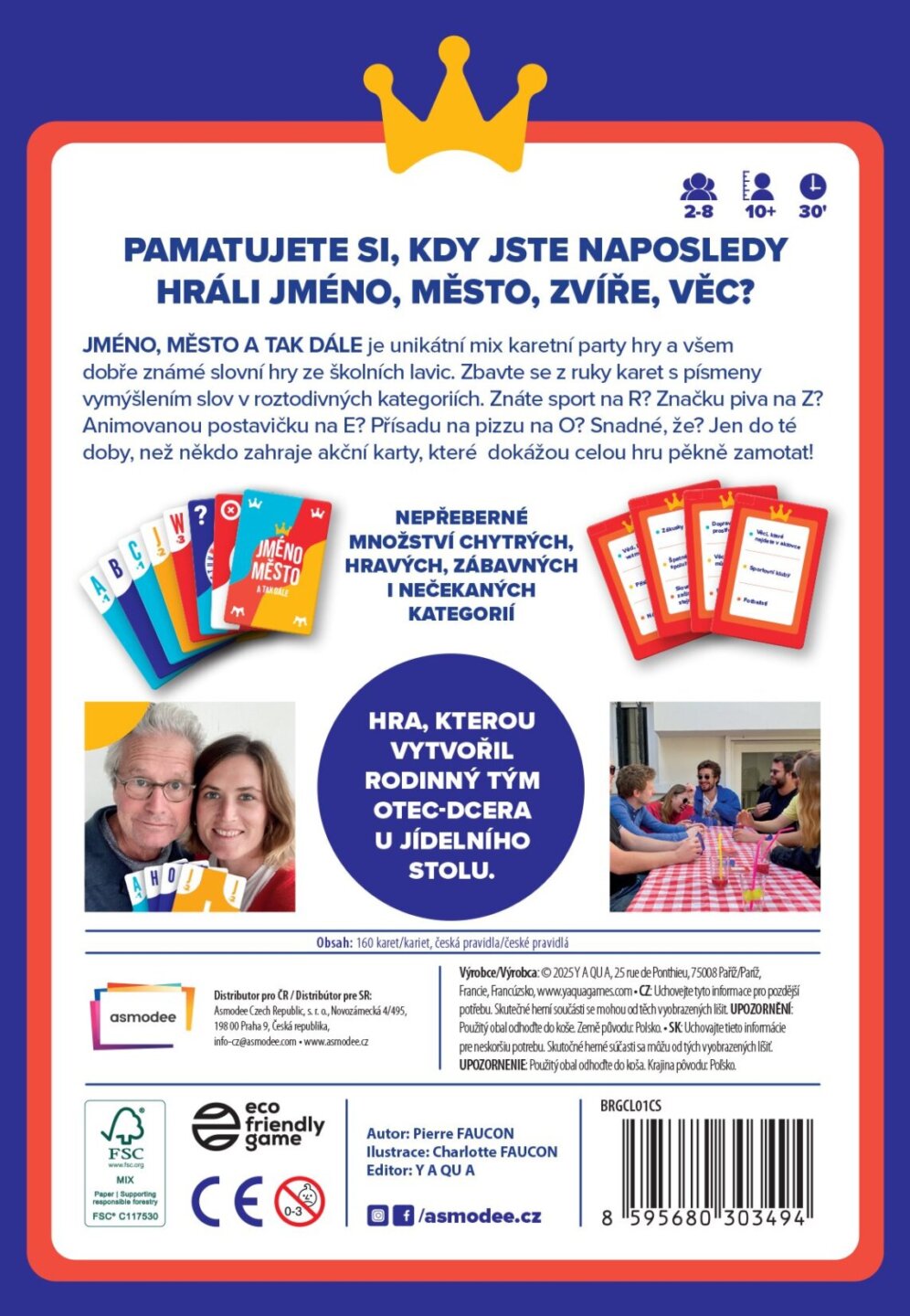 PAMATUJETE SI, KDY JSTE NAPOSLEDY HRÁLI JMÉNO, MĚSTO, ZVÍŘE, VĚC? JMÉNO, MĚSTO A TAK DÁLE je unikátní mix karetní party hry a všem dobře známé slovní hry ze školních lavic. Zbavte se z ruky karet s písmeny vymýšlením slov v roztodivných kategoriích. Znáte sport na R?