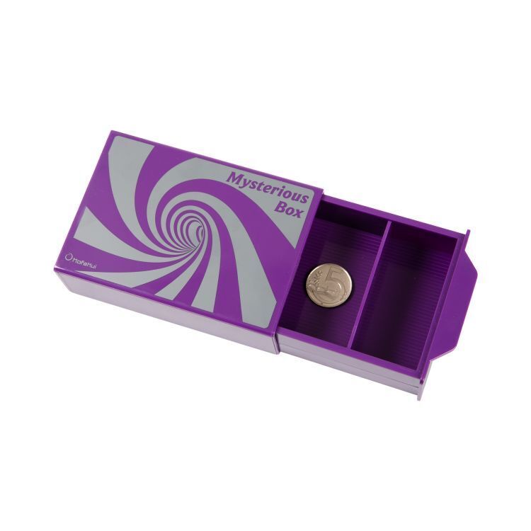 Kouzelnická rekvizita, do které lze přičarovat, nebo z ní také nechat zmizet různé drobné předměty. Sada obsahuje fialovou krabičku a jednoduchý návod. Obtížnost: lehká (1/3) Materiál: plast Rozměry krabičky: 8 × 12,5 × 3,5 cm