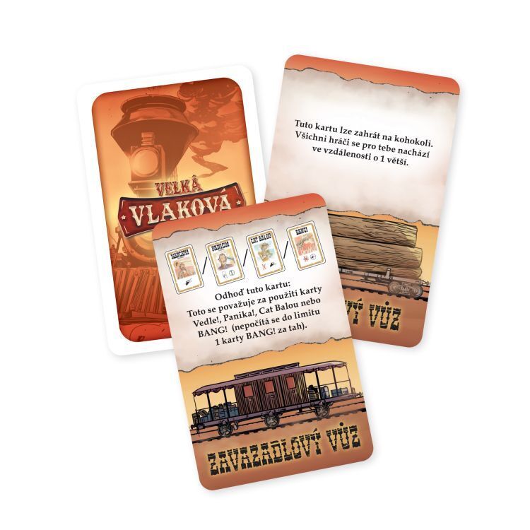 Rozšíření BANG! Velká vlaková přidává ke hře nový herní prvek v podobě vlaku, kde můžete získat zajímavé výhody. V krabičce rovněž najdete nové postavy a karty do hry. Nelze hrát samostatně bez základní hry BANG! Jedná se o rozšíření základní hry! Hra obsahuje: 17 karet vlaku, 14 karet stanic,...