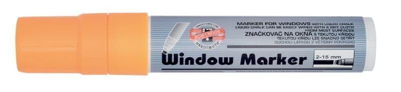 Značkovač na okna s tekutou křídou oranžový, s oranžovým uzávěrem, plochý hrot, šíře stopy 2 - 15 mm. Rozměr délka 161 mm, o 26 ...