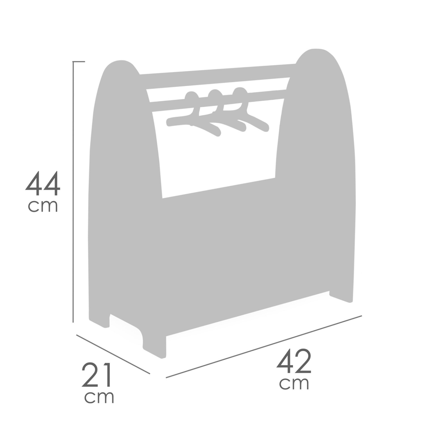 košíky na různé drobnosti 21 x 20 x 11 cm (š x h x v)• Rozměry věšáku: 42 × 21 × 44 cm (š x h x v)• Oblečení a doplňky nejsou součástí baleníDoplňující informace:• Nádherný španělský design• Precizní zpracování• Materiál: MDF, masivní dřevo, kov• Baleno v