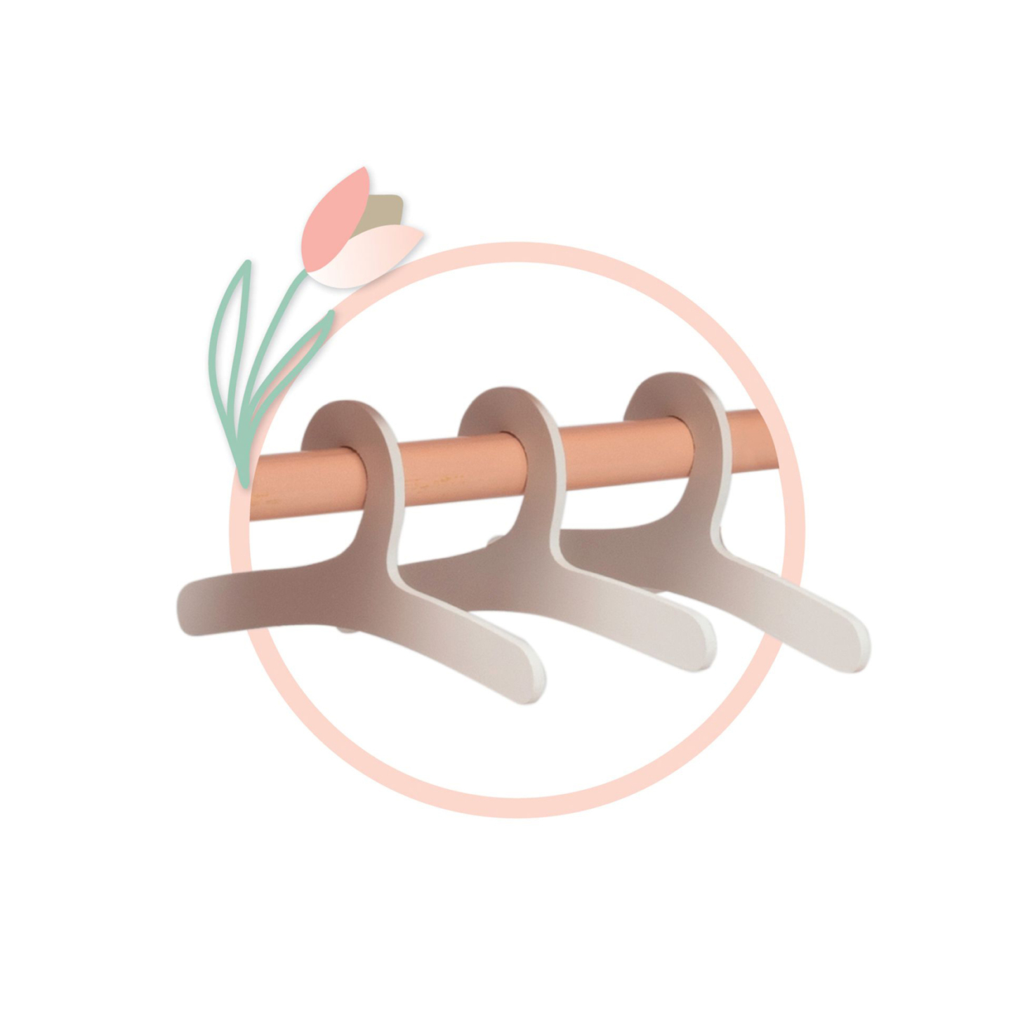 DeCuevas 55874 Dřevěný šatní věšák na oblečení pro panenky Tulipe 2025 patří do stejnojmenné kolekce, která je novinkou roku 2025 a nabízí výběr výrobků od jídelních sad přes postýlky a kočárky až po dřevěný nábytek pro panenky. Tulipe je, jak již sám název