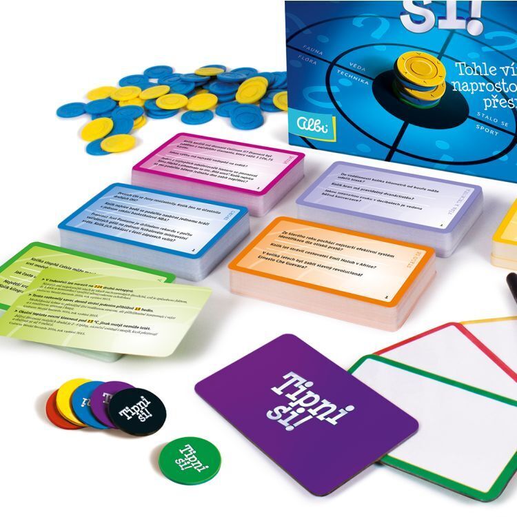 V párty hře Tipni si budete odhadovat rychlost, délku, výšku, hmotnost nebo třeba správný letopočet. Pokud si svým tipem nebudete jistí, můžete si vsadit i na soupeře! V této párty hře najdete 1 188 otázek rozdělených do 6 okruhů: společnost, fauna a flóra, věda a technika, stalo se, sport a...