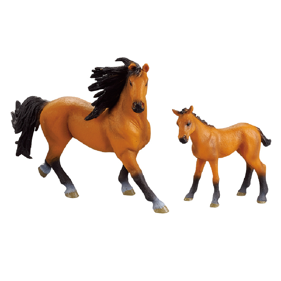 Figurka koně a hříběte v hnědé barvě s tmavou hřívou. Součástí balení také ohrada. Ideální pro milovníky koní. Tato hračka je součástí kolekce Moje malá farma.