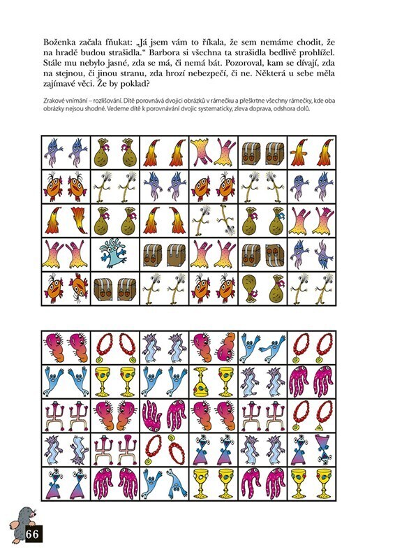 Publikace je určena dětem k prověření jejich znalostí, schopností a dovedností před nástupem do školy, nejvhodnější je pro věk 4 až 6 roků dítěte. Knížka se zaměřuje na oblast grafomotoriky, zrakového vnímání, řeči, sluchového vnímání, prostorové a pravo-levé orientace, vnímání času a základních...