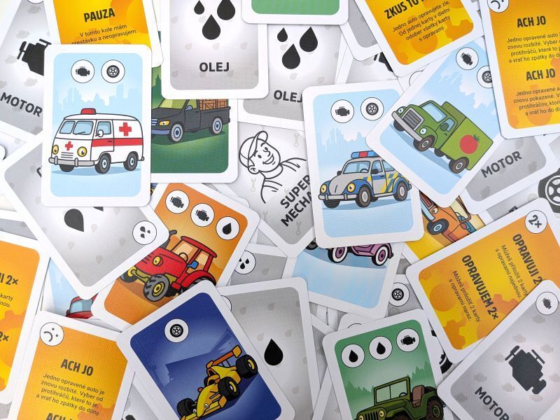 Svižná karetní hra pro malé milovníky aut. Opravujete auta, občas vám někdo nějaké šlohne nebo se zase pokazí. Vyhrává nejlepší mechanik.