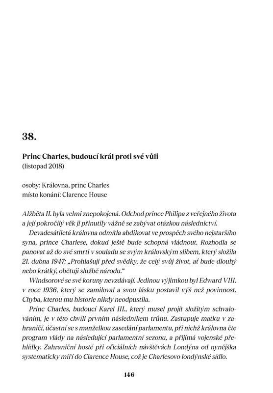 Věděli jste, že Charles, Dianin nevěrný manžel, byl nějakou dobu Scotland Yardem podezříván, že hrál zásadní roli v její tragické smrti? Že královna určila za svého nástupce svého vnuka Williama? Že Kate úmyslně svrhla Meghan z piedestalu tím, že infiltrovala svého komplice do Harryho...