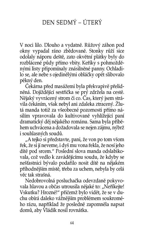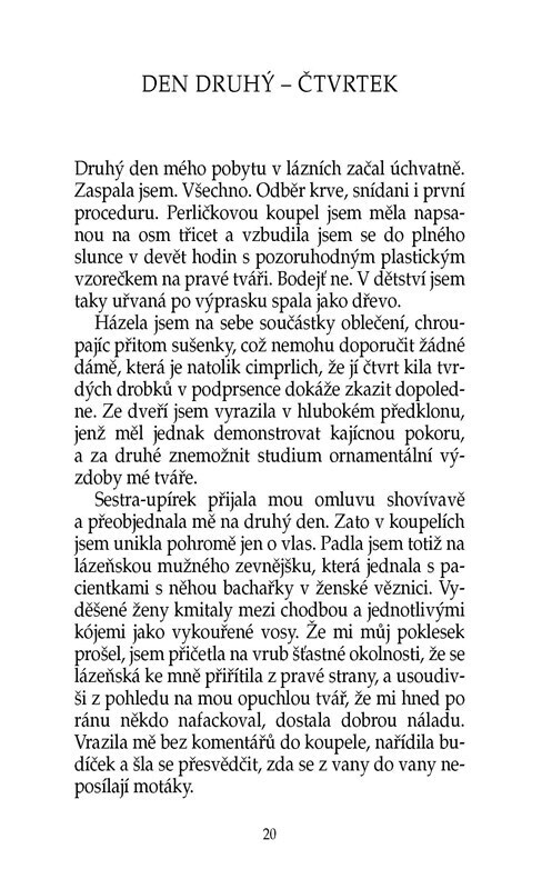 Rozvod se ženskou většinou pořádně zamává. Hrdinku této knihy ovšem zasáhl natolik, že se z jeho důsledků musí zotavovat v lázních. Potkává tam spoustu nových lidí a nemine den, aby se jí nepřihodilo něco mimořádného. A protože ony veselé příhody i trapasy popisuje Ivanka Devátá, která si...