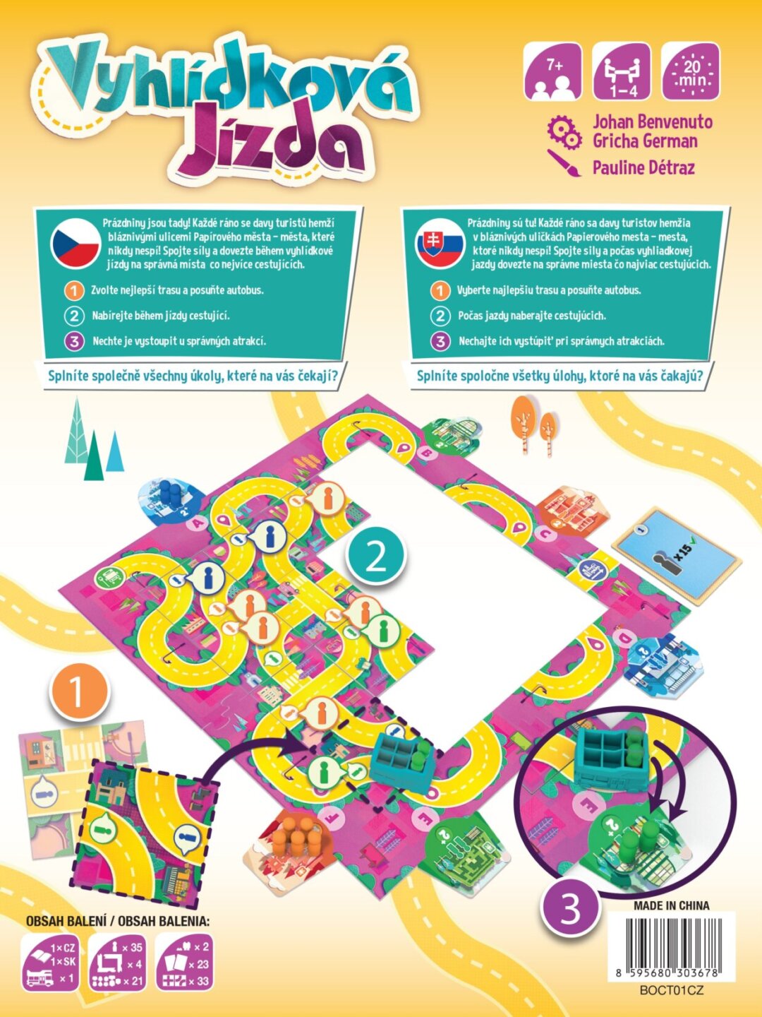Proč byste si měli hru koupit - Společně plánujete trasu a rozhodujete, kam autobus pojede, což podporuje komunikaci mezi hráči a posiluje týmovou spolupráci. - Hra má postupně rostoucí obtížnost, takže se neomrzí ani po více partiích a stále přináší nové výzvy i nečekané