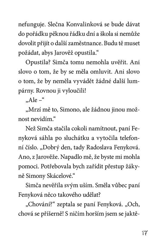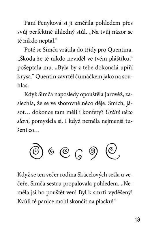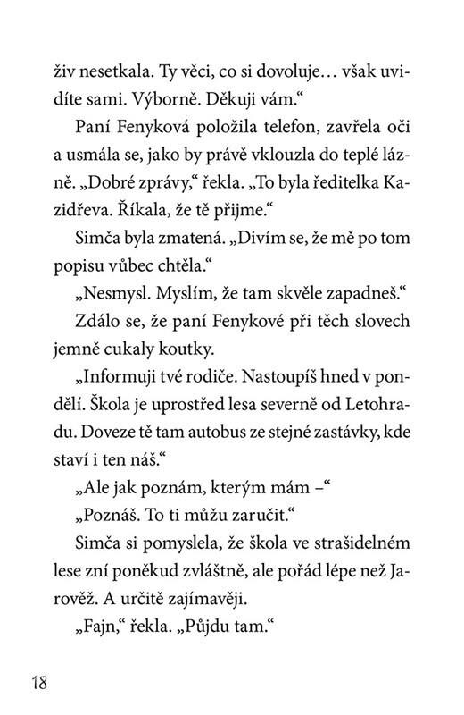 Simča nikdy nezapadala mezi slušně vychované dámy navštěvující školu Jarověž. Když jí během hodiny přírodopisu uteče její krysí mazlíček Quentin, je to poslední kapka. K radosti učitelů, spolužáků i svého dokonalého dvojčete Sandry je přeložena na Kazidřevo. Školu, jejíž motto zní „Učením ke...