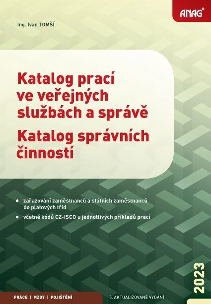 a státními zaměstnanci do platových tříd, a poskytující další praktickou pomoc a orientaci formou komentářů k problematickým postupům při zařazování zaměstnanců nebo služebních míst do platových tříd.Katalog prací pro rok 2023V publikaci se odráží změny, ke kterým