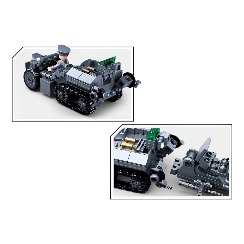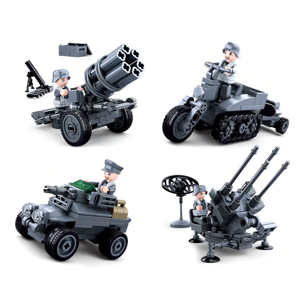 Raketomet a protiletadlové dělo, obrněné vozidlo a speciální pásová motorka mohou být vzájemně kombinovány v tento model. Pojízdná útočná jednotka je připravena k přemístění! Inovativní stavebnice Sluban je možno kombinovat s podobnými stavebnicemi mnoha dalších významných výrobců. Jsou vyráběny...