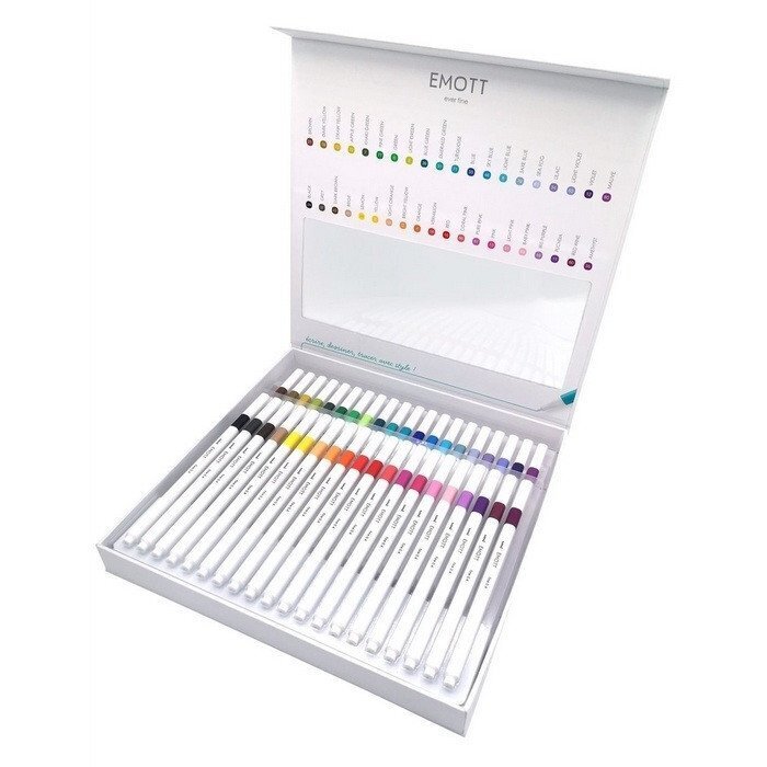 kreativního barevného světa. Emott – vyjádřete své emoce stylově.br brKompletní sada 40 barev linerů EMOTT v elegantním balení a s magnetickým uzávěrem. Bohaté spektrum odstínů zaručí, že už vám nebude chybět žádná barva. Stylový dárek i praktický pomocník pro