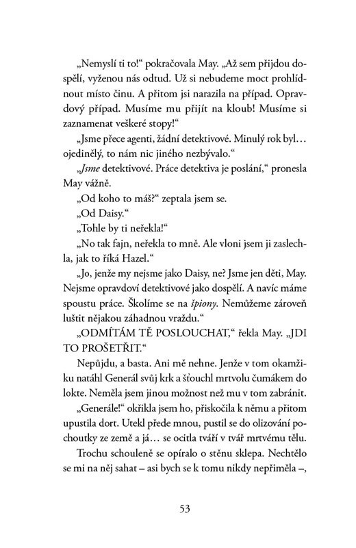 Březen 1941. Británie je ve válce a Ministerstvo mimořádných aktivit zařadilo do svého výcviku agentů také děti. A tak se mezi nováčky ocitne i nebojácná a mazaná trojice našich hrdinů: May, Erik a Nuala. Ti ve sklepě domu poškozeného leteckou pumou učiní děsivý objev – mrtvé tělo. Tělo, které...