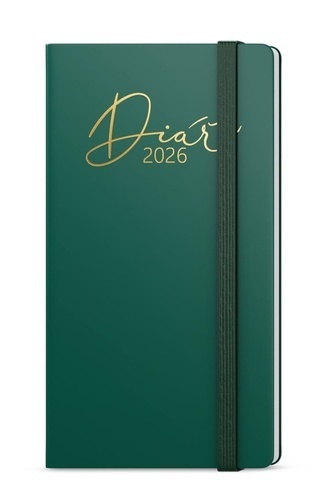 Kapesní týdenní diář v tmavě zelené barvě a luxusní zlatou ražbou je malý pomocník pro Vaše plánování.