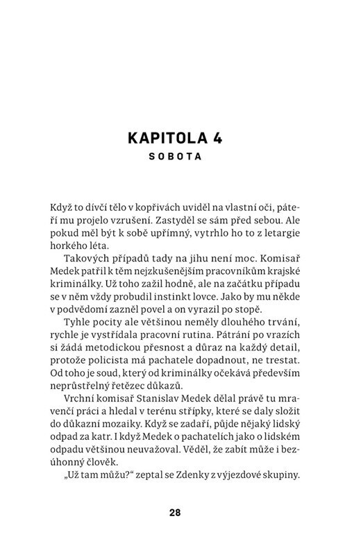 Jana tuší, že muž, se kterým čeká dítě, něco skrývá. Musí odhalit pravdu. Radka zjišťuje, že její syn provedl něco, co nejde vzít zpět. Musí ho ochránit před následky. A v kopřivách leží dívčí tělo. Na maloměstě, kde si lidé vidí až do kuchyně, ale přitom před sebou mají tajnosti, se rozjíždí...