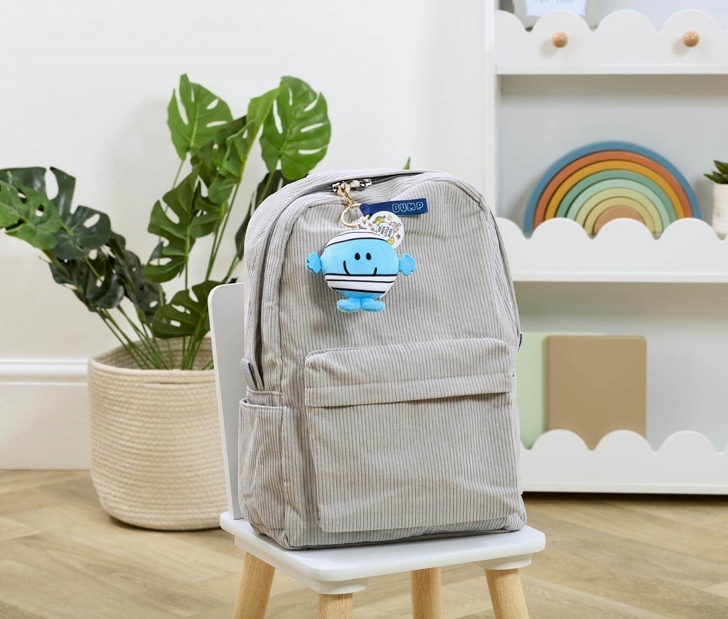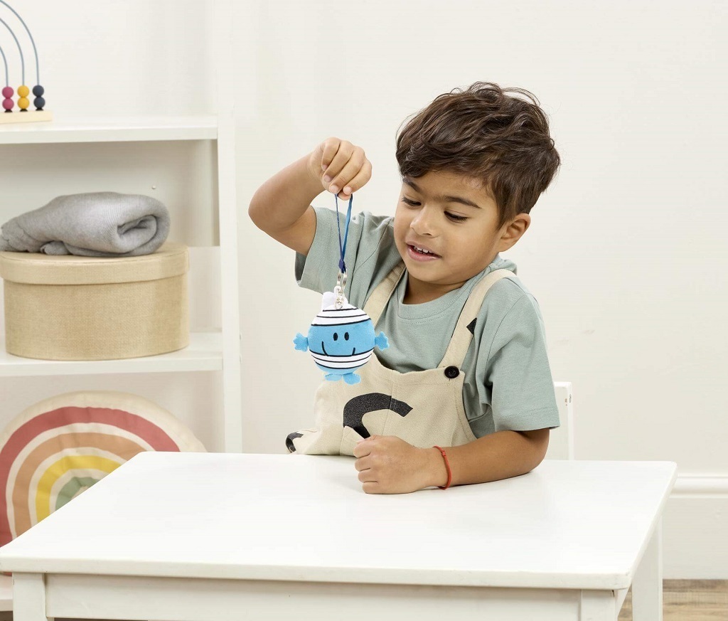 Vydejte se do světa dobrodružství s plyšovým přívěskem na klíče Mr. Bump! Inspirováno oblíbenou kolekcí Mr. Men od Rogera Hargreavese – tento uklidňující malý suvenýr s charakteristickým modrým tělem pana Bumpa, pruhovanými obvazy a klasickým kulatým tvarem, je