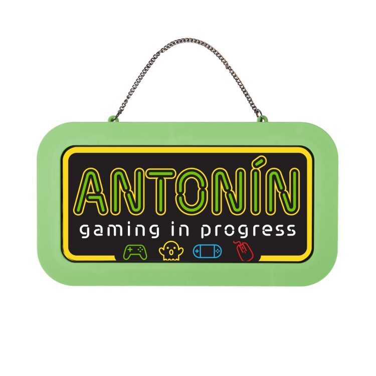 Originální svítící neonová cedulka se jménem. Snadno ji kamkoli postavíte nebo zavěsíte, funguje totiž na baterie. Rozměry cedulky: 18,7 × 10,3 cm Baterie: 2 × AAA (jsou součástí balení)