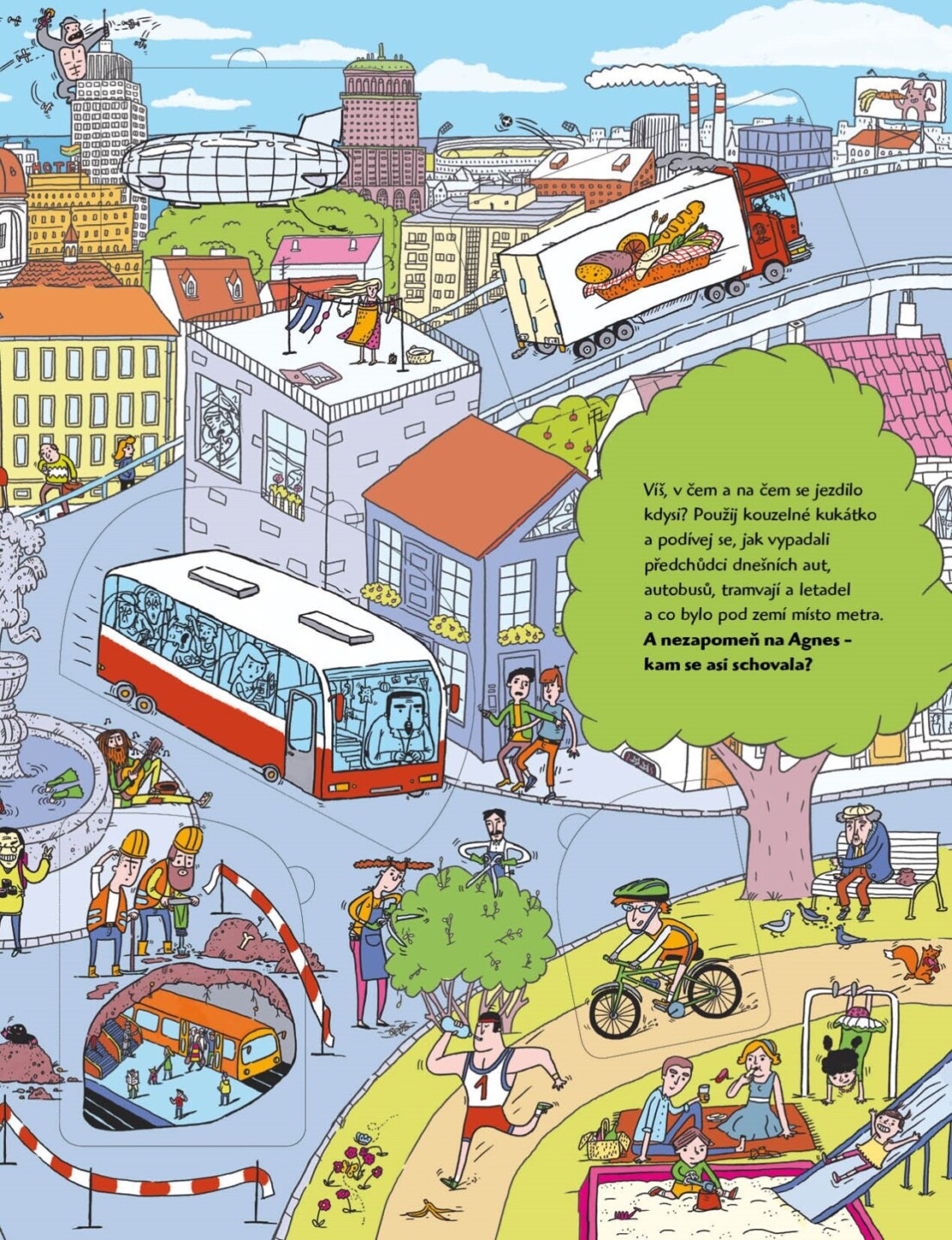 Napadlo vás někdy, jak se žilo v minulosti? Jak vypadalo první auto, babiččiny školní pomůcky nebo středověký jeřáb? Stačí se podívat pod jedno z desítek okének uvnitř knihy, a hned zjistíte, jak dříve vypadala města. Najdete na každém obrázku ukrytou zvědavou průvodkyni, mývalku...