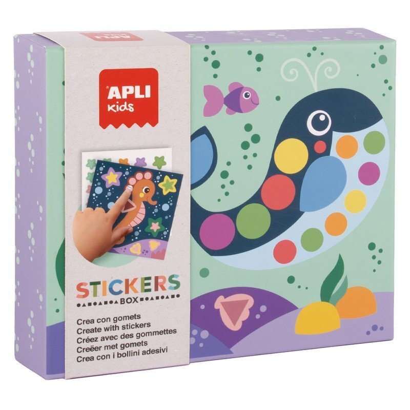 archů nepermanentních tematických samolepek, předlohu – brožurubr• nepermanentně lepicí samolepky pro opakované použitíbr• podpora jemné motoriky, koncentrace a dětské představivostibr• motivy zvířat v oceánubr• vhodná jako dárekbr• pro děti od 3 let
