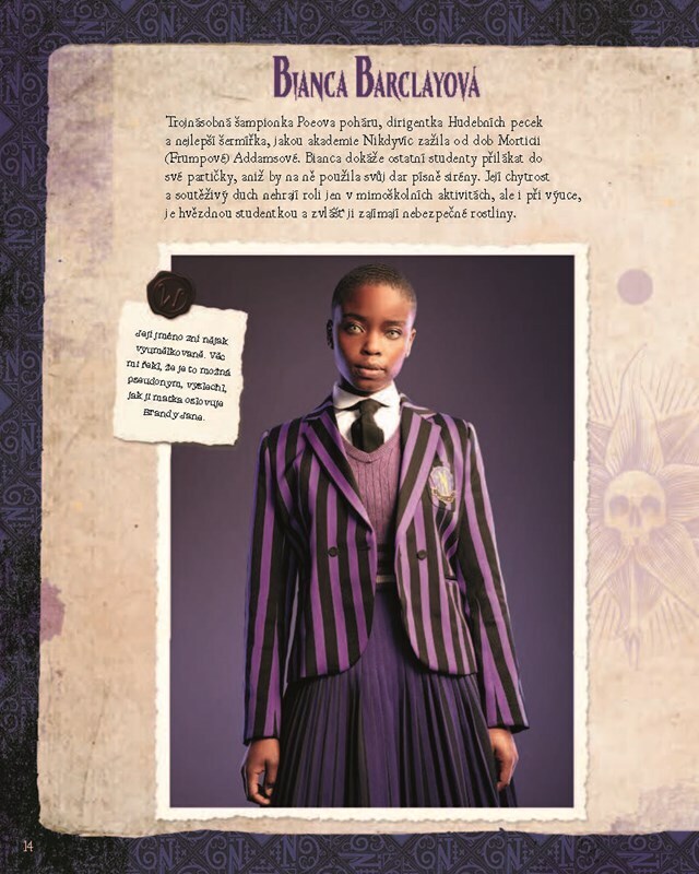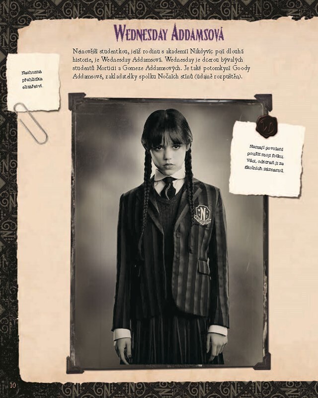 Uvnitř této obsáhlé příručky najdete vše, co potřebujete vědět o nadpřirozených studentech, zaměstnancích a absolventech akademie Nikdyvíc. Ponořte se do temné a podivné historie města Jericho, jeho zakládajících rodin a odhalte, jak akademie Nikdyvíc vznikla. Svět úspěšného seriálu Wednesday...
