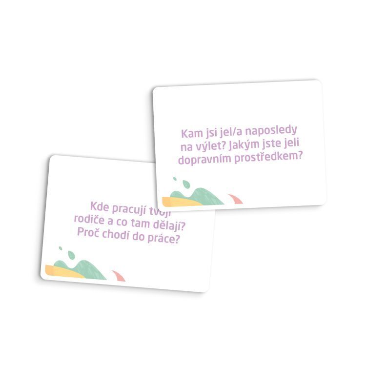 Konverzační karty pro rodiče a děti od 6 let, které se díky kartám hravým způsobem učí vyjadřovat a sdílet své nápady a myšlenky. Hra obsahuje: 89 karet s otázkami, 10 prázdných karet pro vlastní otázky a návod s tipy.