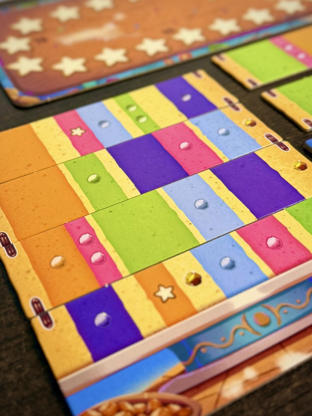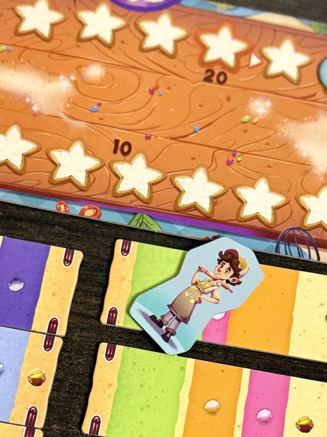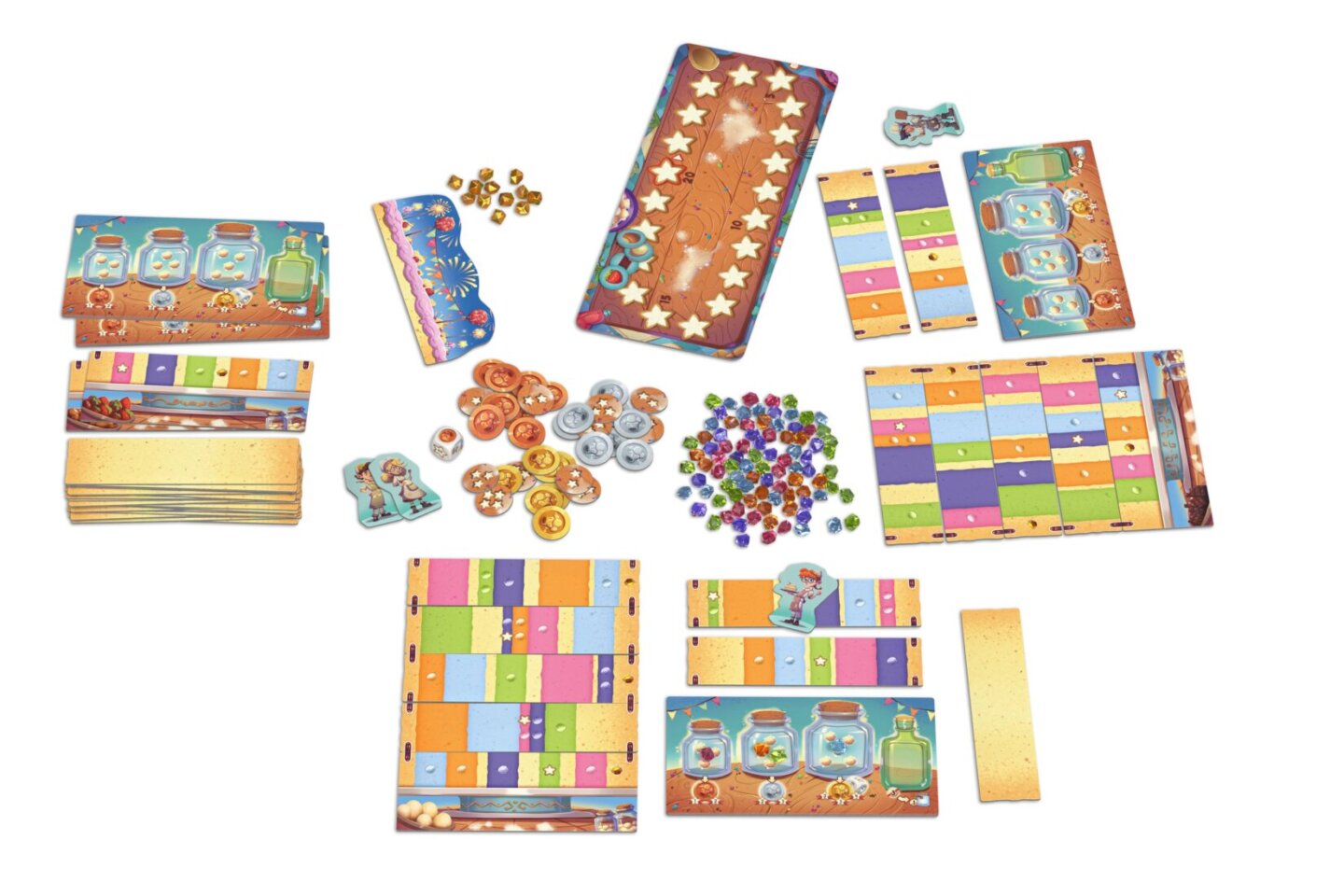 barevnému zpracování, výrazným komponentům a atraktivnímu vizuálu působí hra na stole doslova jako skutečný dort plný cukrové fantazie. - Současné hraní všech hráčů zaručuje rychlý spád partie a neustálé napětí bez zdlouhavého čekání na vlastní tah. - Kombinace