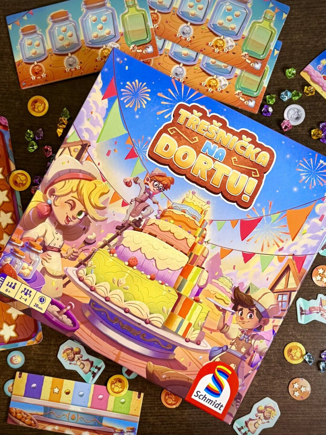 štěstí a taktiky vytváří napínavou atmosféru od první vrstvy až po poslední, takže každý tah přináší nové možnosti a překvapení. - Herní doba kolem dvaceti minut dělá z Třešničky na dortu ideální volbu pro rodinné odpoledne nebo krátkou herní přestávku mezi