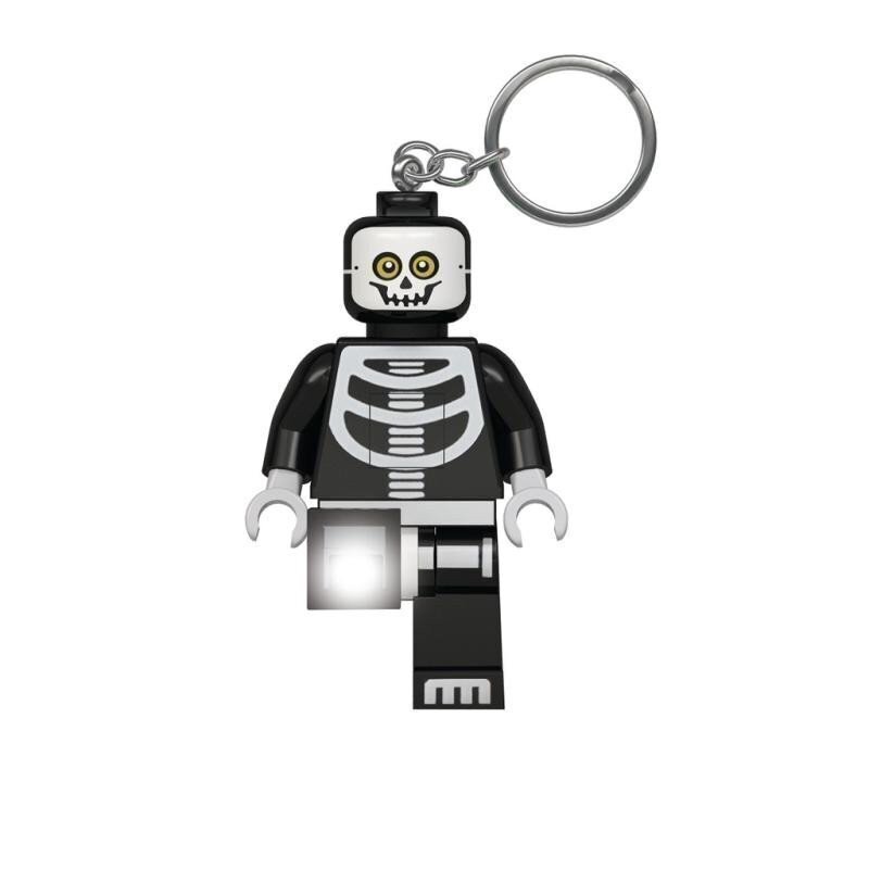 Postavička Kostry jako LED svítící přívěšek na batoh nebo klíče. Sběratelské LEGO postavičky s tlačítkem na hrudi a LED diodami ...
