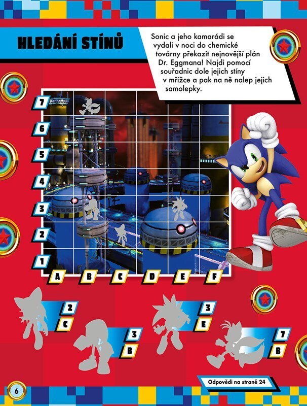 Sonic a jeho kamarádi musejí zachránit svět a přemoct všechny zloduchy! Pomozte jim vyřešit všechny hádanky a úkoly s pomocí více než 200 samolepek!