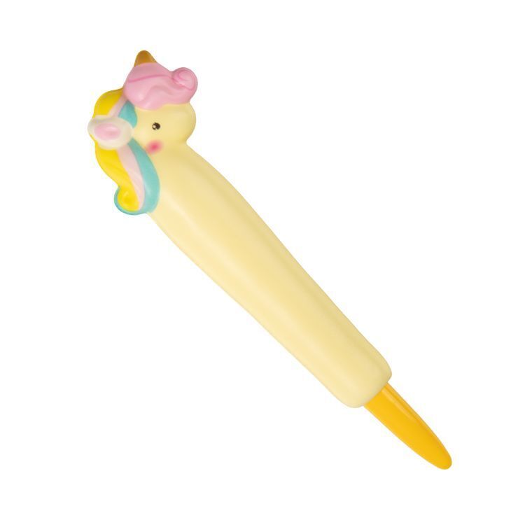 Roztomilá squishy propiska s černým inkoustem ve tvaru jednorožce uvolňuje stres.