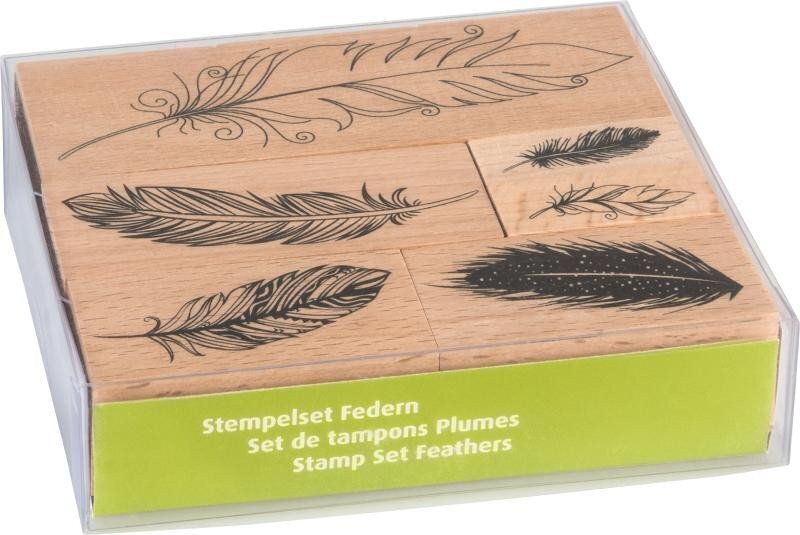 Sada razítek 6 ks s motivem peříček. Díky hluboké gumové textuře lze razítka použít na papír, textil, polymery i jiné povrchy. J...