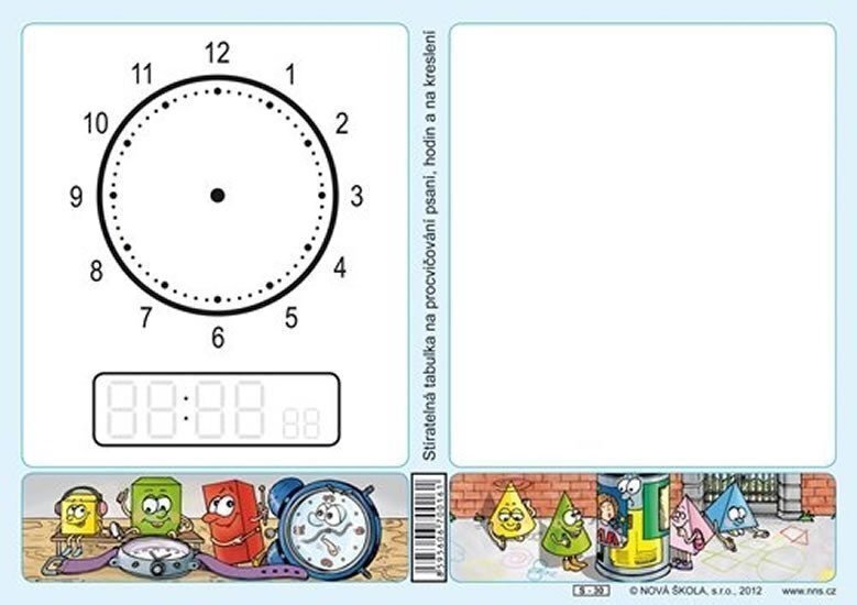 Stíratelná tabulka na procvičování psaní, hodin a na kreslení