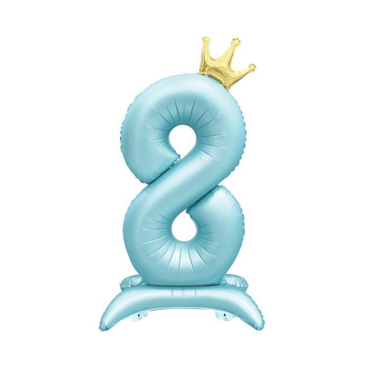 Balónek fóliový Stojící číslo 8 s korunkou světle modré 82 cm