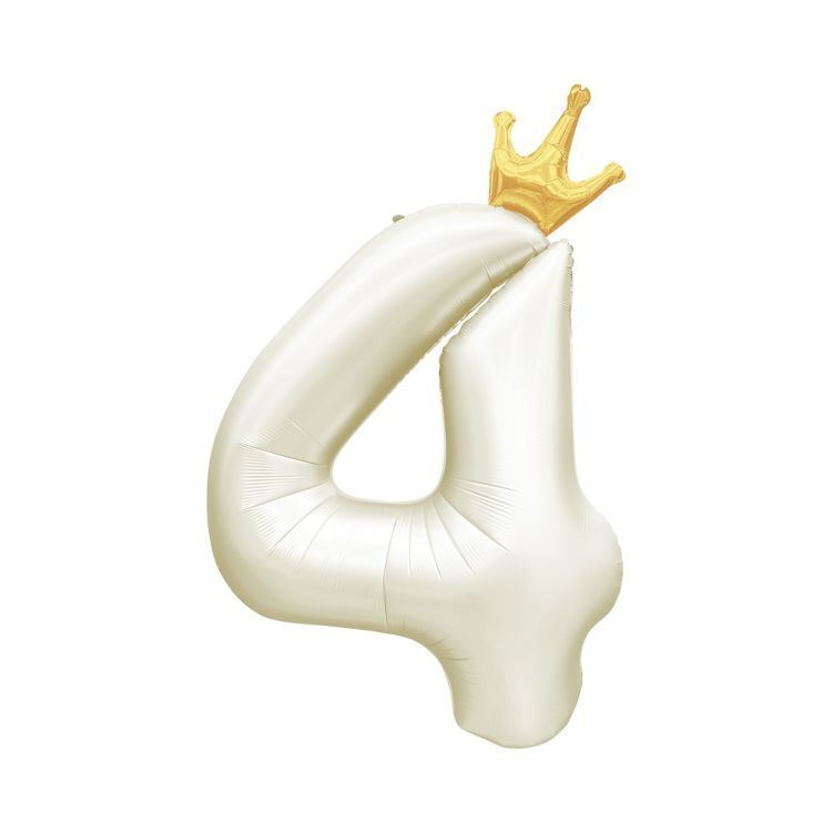Balónek fóliový 82 cm světle krémový s korunkou číslo 4