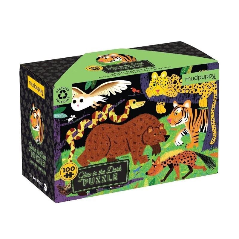 Poskládejte dohromady barevnou scénu lovců divočiny. Zhasněte světla a uvidíte, jak predátoři v noci září!Puzzle jsou vyrobeny za použití významného podílu recyklovaného papíru a nabízí špičkový potisk nezávadnými barvami. Jsou opatřeny matnou povrchovou úpravou,