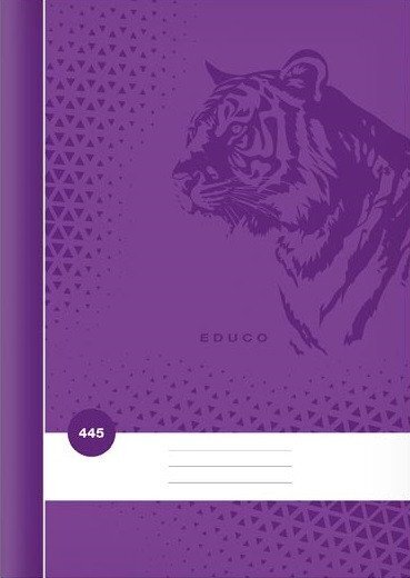 Školní sešit ve formátu A4, čtverečkovaný, v tmavě fialové barvě, s motivem tygra, v deskách z křídového papíru. Typ: 445 For...