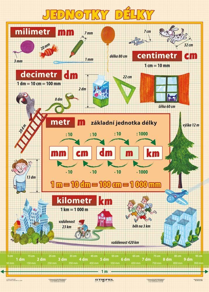 Naučná tabulka napomáhá žákům orientovat se v jednotkách délky a osvojit si vztahy mezi nimi. Obsah přední strany tvoří jednotky...