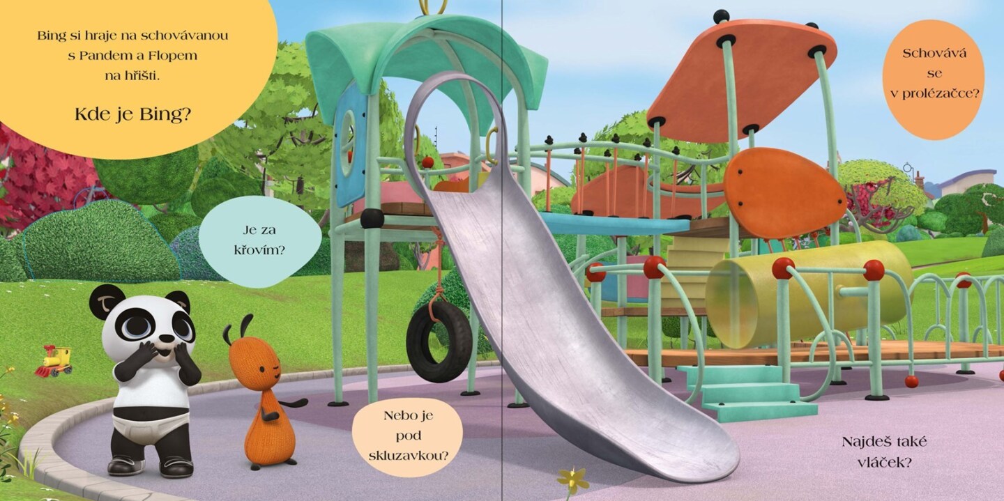 Bing se umí dobře schovávat. Umíte dobře hledat? Odklápějte okénka a hledejte Binga. A na každé stránce na vás čekají ještě další zábavná okénka a věci k hledání. S Bingem se vám hra na schovávanou bude určitě líbit!