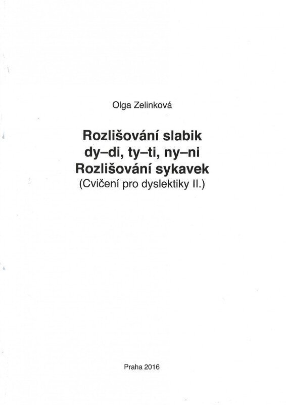 obsahuje cvičení zaměřená na rozlišování slabiky di-dy, ti-ty, ni-ny. Úkoly ve druhé části vedou k rozlišování sykavek s, c, z-š, ž. Chyby v těchto jevech patří mezi specifické dysortografické chyby. Jejich příčinou je nejčastěji nedostatečné sluchové rozlišování,