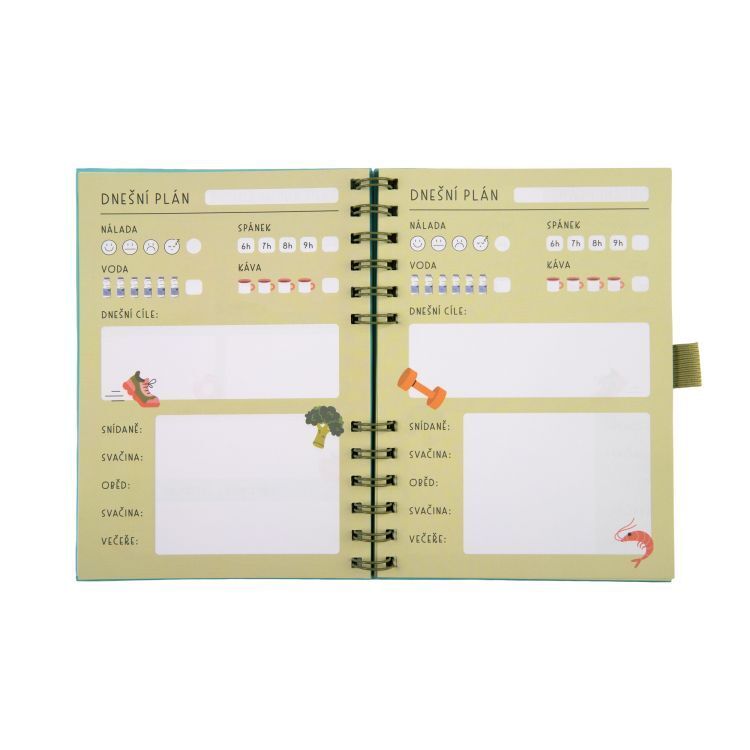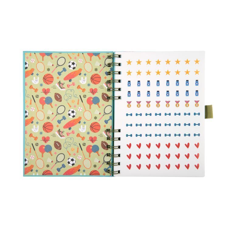 Kompaktní fitness deník s kroužkovou vazbou a denními záznamy potěší každého sportovce. Součástí je i set samolepek. Rozměry deníku: 15 × 19,5 × 1,8 cm