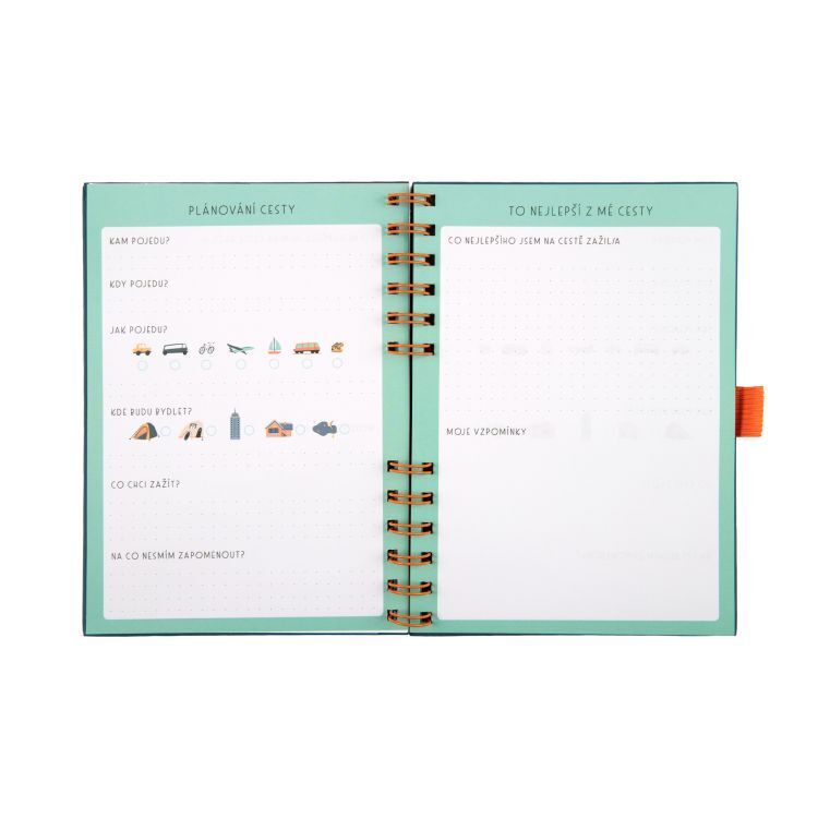 Kronika pro komplexní plánování cesty (destinace, doprava, ubytování) a strukturovaný záznam vzpomínek. Kroužková vazba, uzavírání na gumičku a poutko na pero zajistí, že kronika vydrží všechna dobrodružství. Rozměry kroniky: 15 × 19,5 × 1,8 cm