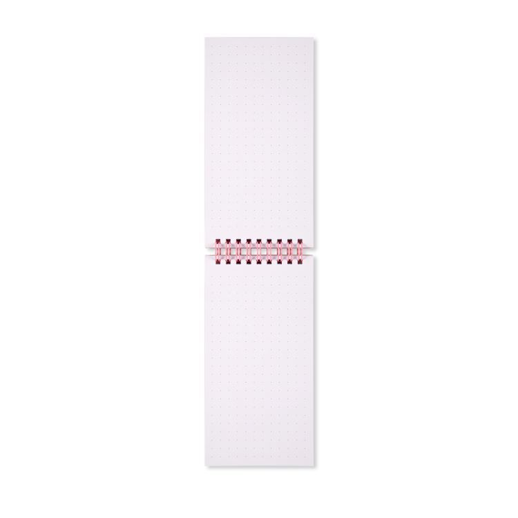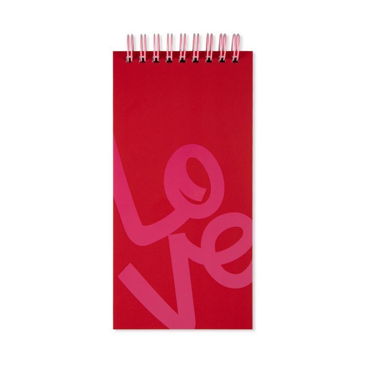Spirálový blok s nápisem Love má tečkované stránky. Rozměry: 18 × 9 × 0,7 cm