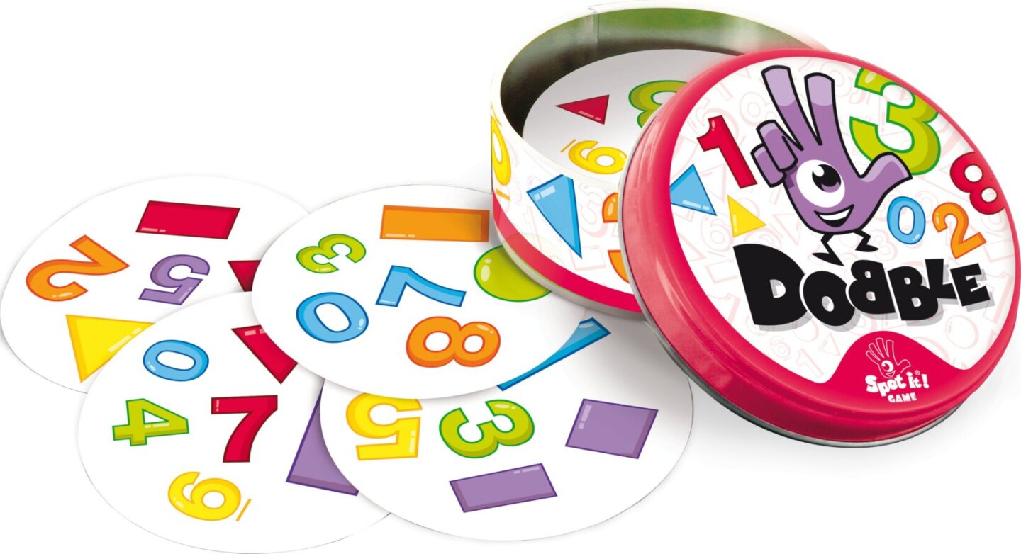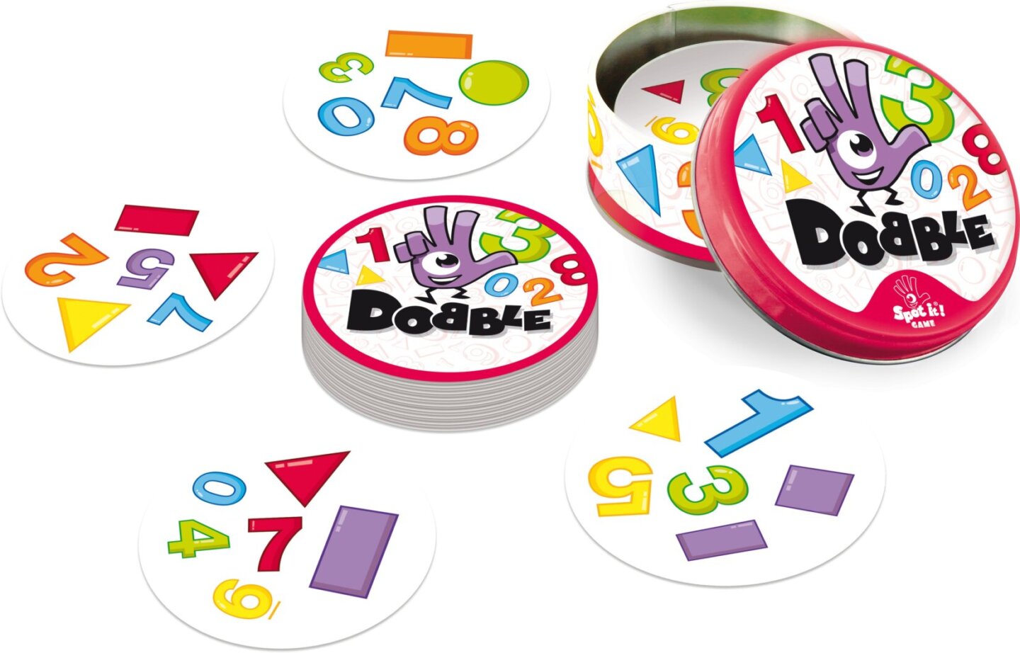 Dobble 1-2-3 je varianta oblíbené hry Dobble určená především pro menší děti, která při hraní přináší dětem pozvolný úvod do poznávání tvarů, čísel a barev. Hráči zde hledají dvě stejná čísla nebo tvary na kartách při různých verzích hry (v pravidlech je popsáno celkem 5 her). Super jsou kulaté...