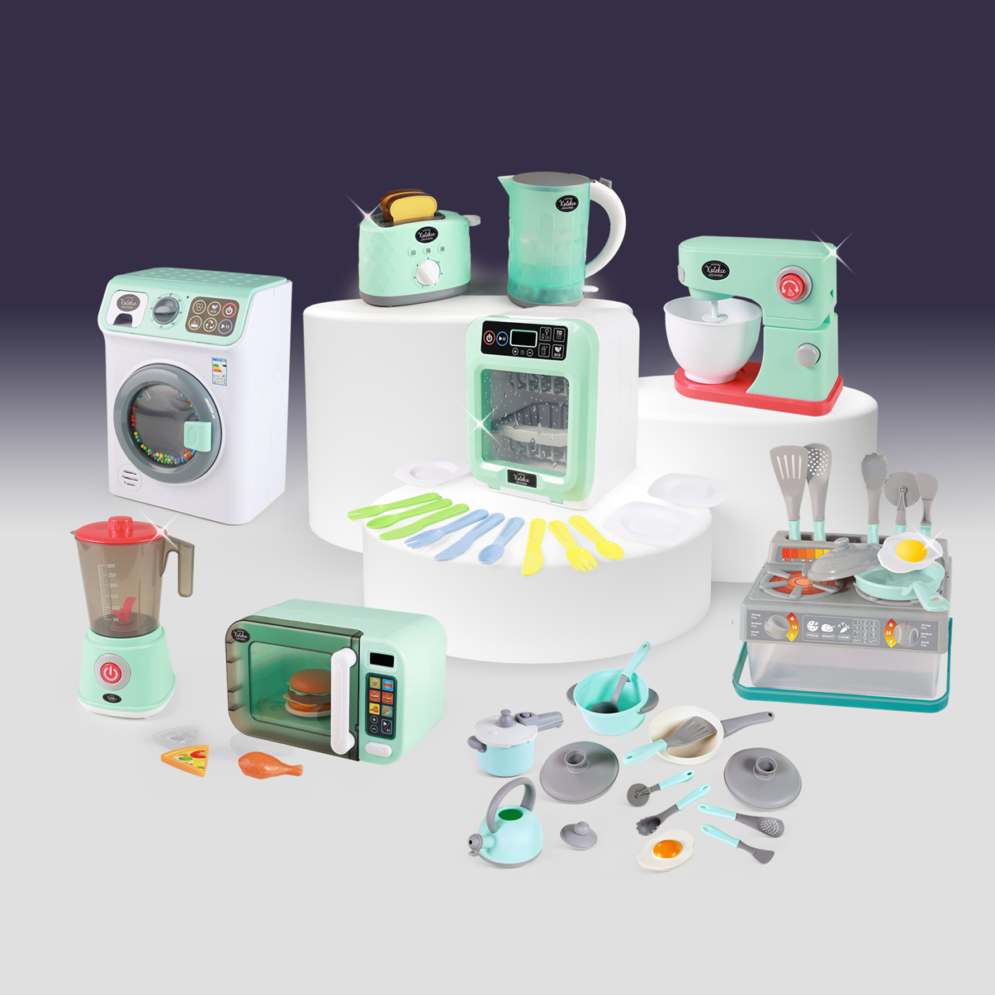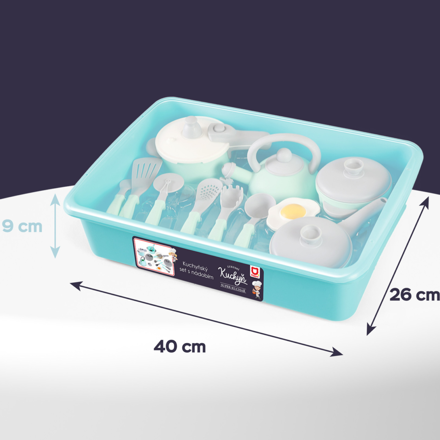 Velká kuchyňská sada ve které najdeš spoustu užitečných doplňků do kuchyně! Nemůže chybět například konvice, hrnec, pánvička, tlakový hrnec, naběračka a mnoho dalšího kuchyňského vybavení. Vše je navíc uloženono v praktickém boxu. Vyrobeno z plastu.