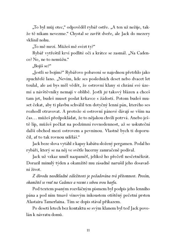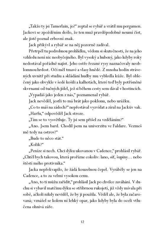 Jack Tamerlain před deseti lety opustil ostrov Cadence, aby se stal bardem na pevninské univerzitě. Když však začnou z ostrova mizet dívky, je povolán zpět domů. Adaira, dědička východní části ostrova a Jackova bývalá rivalka, věří, že jedině bardova hudba dokáže přivolat duchy živlů a záhadu...