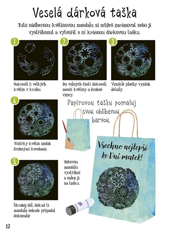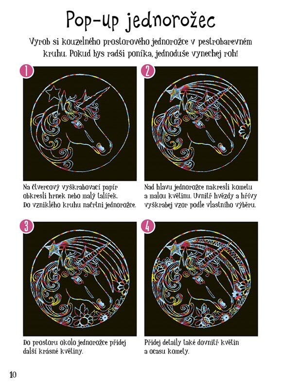 V této kouzelné knížečce najdete vše potřebné k výrobě kouzelných vyškrabovacích obrázků: 10 barevných kartiček, 16 stránek nápadů a návodů, 1 praktické škrabátko a 1 šikovnou kapsu na hotové obrázky. Z hotových výrobků pak můžeš snadno vytvořit úžasné dárky, originální obrázky, rozmanité...