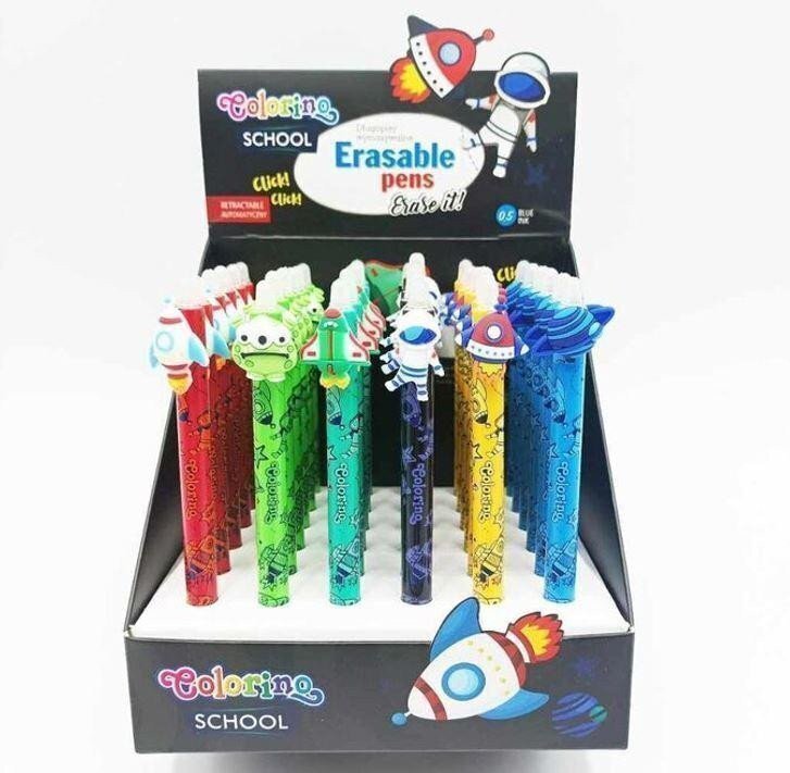 Praktická gumovatelná pera pro děti s motivy vesmíru. Kvalitní inkoust lze v případě potřeby jednoduše vygumovat a přepsat.Náplň...
