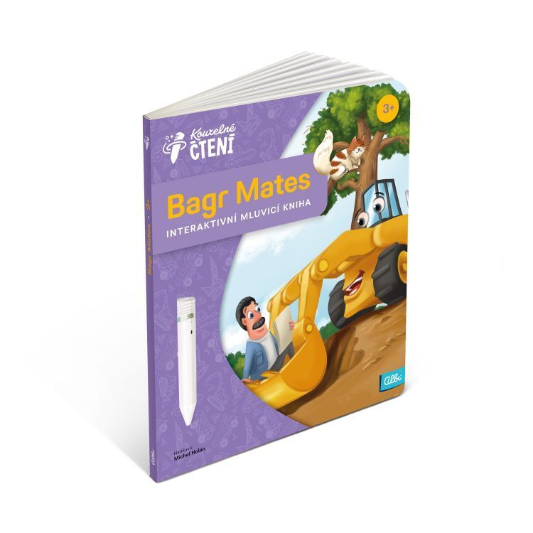Interaktivní mluvicí dětská kniha Bagr Mates z edice Kouzelné čtení seznámí děti od 3 let s dobrodružstvím roztomilého bagru na stavbě.
